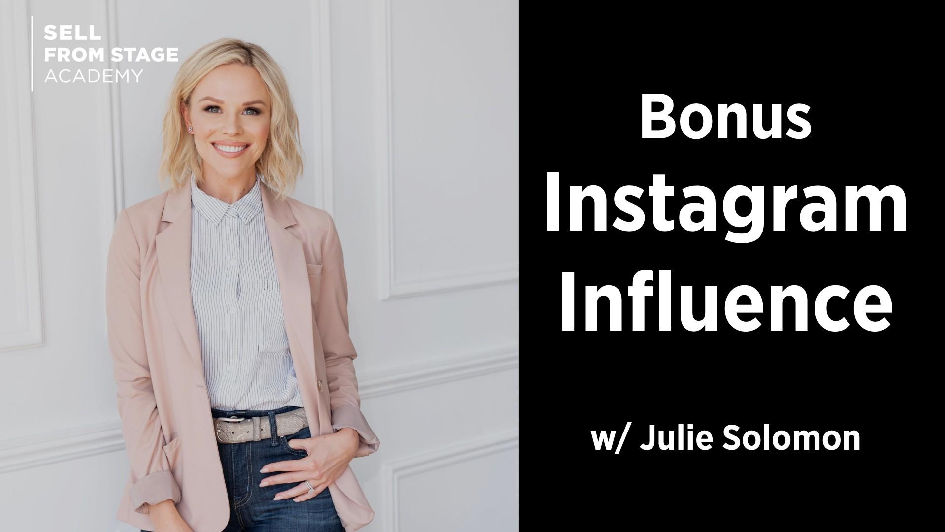 Julie Solomon will be running an exclusive advanced live bonus class to show you how you can become highly influential on instagram and use your following to monetize.