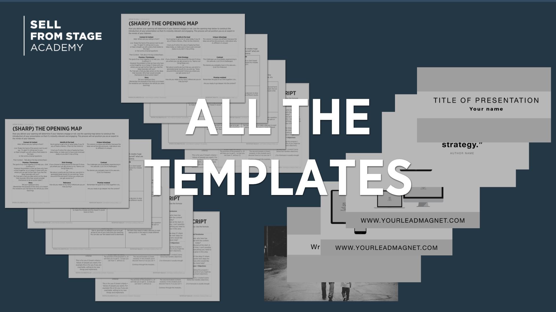 Ever wish you could take your content and “plug it in” to a script or template that you know works? When you join Sell from Stage Academy, not only will you get access to my step-by-step proven formula for selling from stage… you’ll also get done-for-you presentation templates (for live presentations and webinars), speech scripts, and sales forms for those moments when you need to get something together in a hurry - and you need it to work.