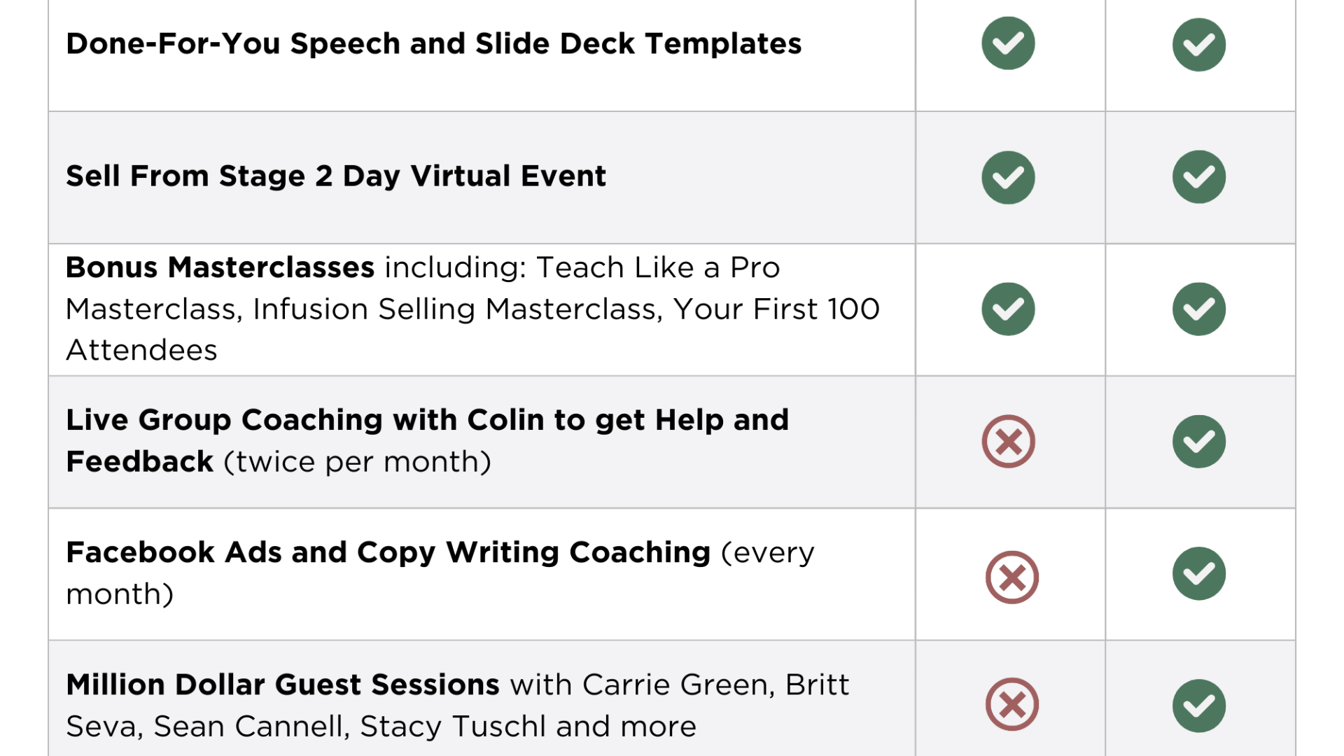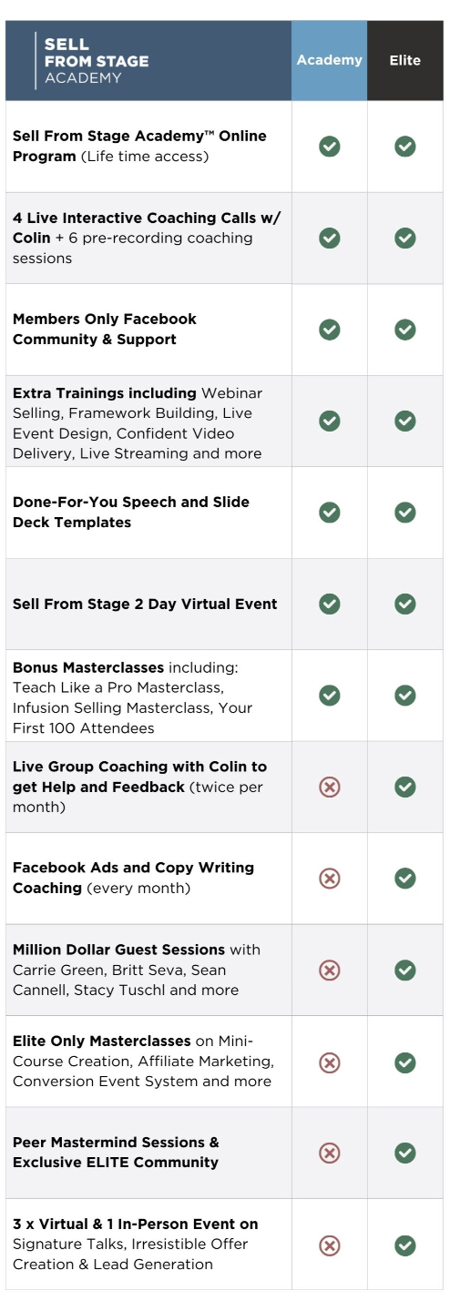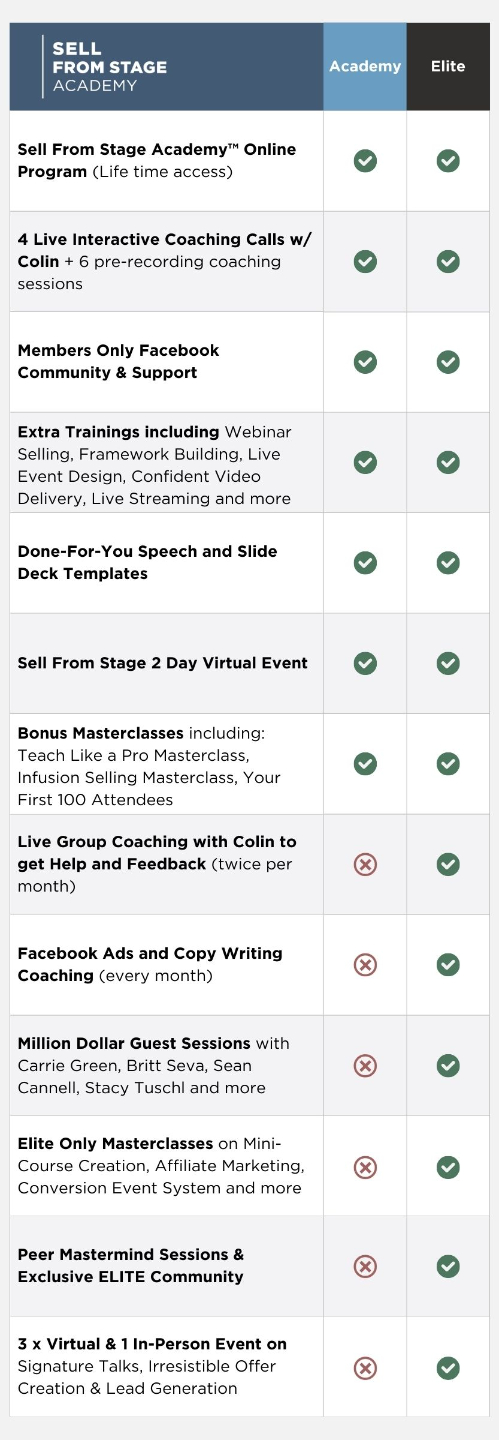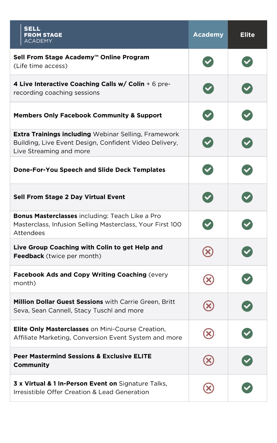 Sell From Stage ELITE™ 12 Month Coaching Program Breakdown: