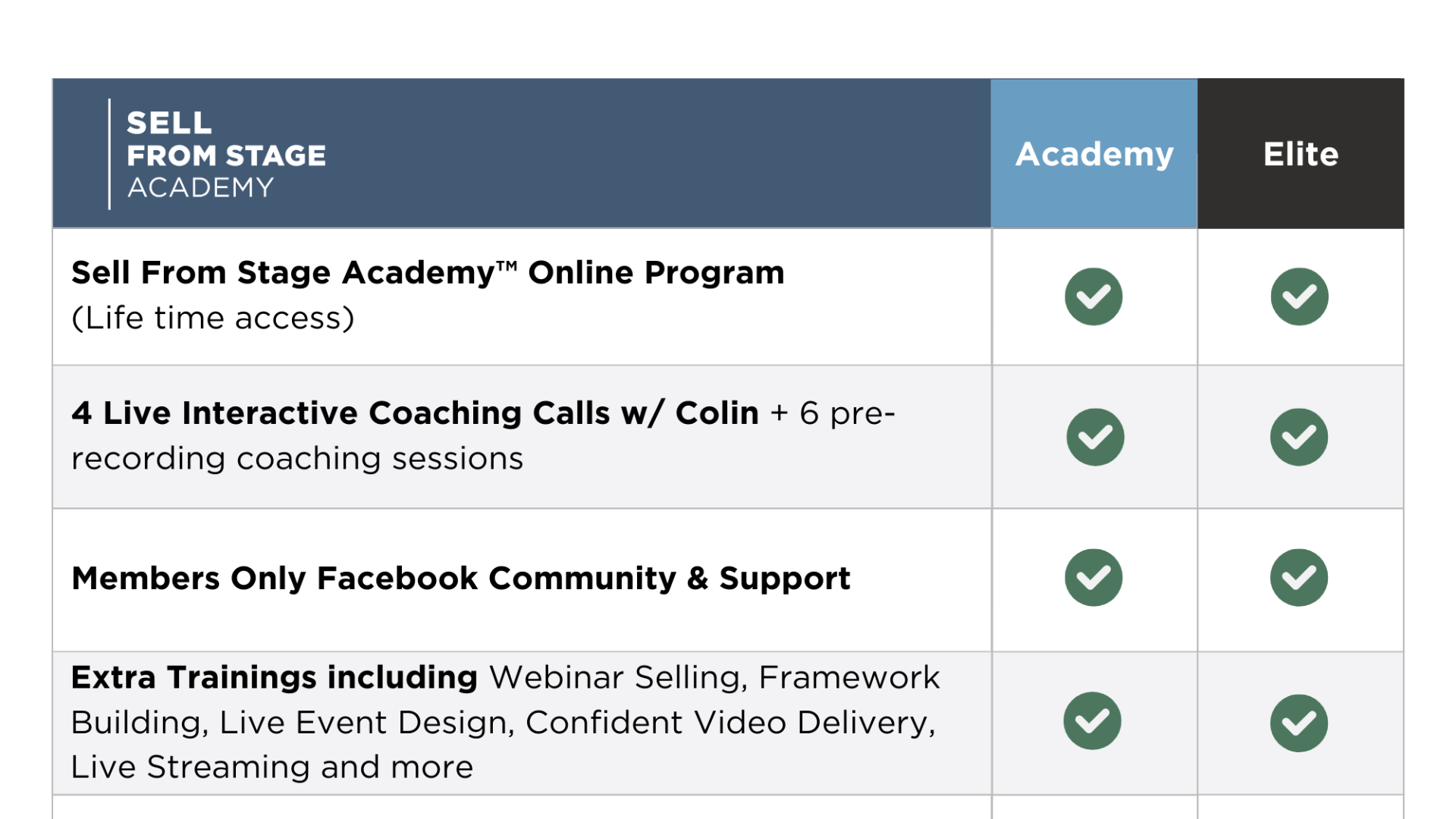 You get access to all that's in Sell From Stage ELITE™ coaching for only...