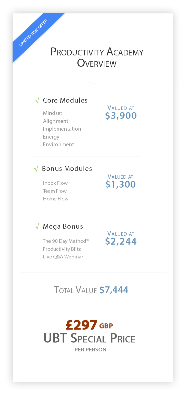 P.S. Access to the Productivity Academy is for a very limited time, once the timer runs out you’ll be locked out, so take action whiles it’s open.