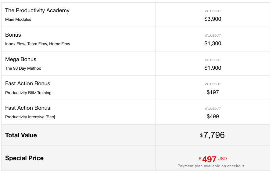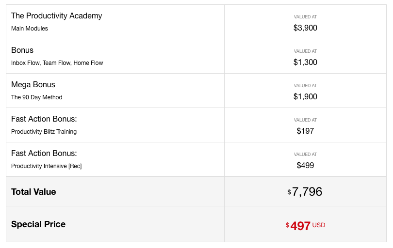 Your ability to gain access to the Productivity Academy will finish as soon as the timer ends. This page will then expire and you'll be locked out. So grab it as this special price while you still can. Can't wait to see you inside!