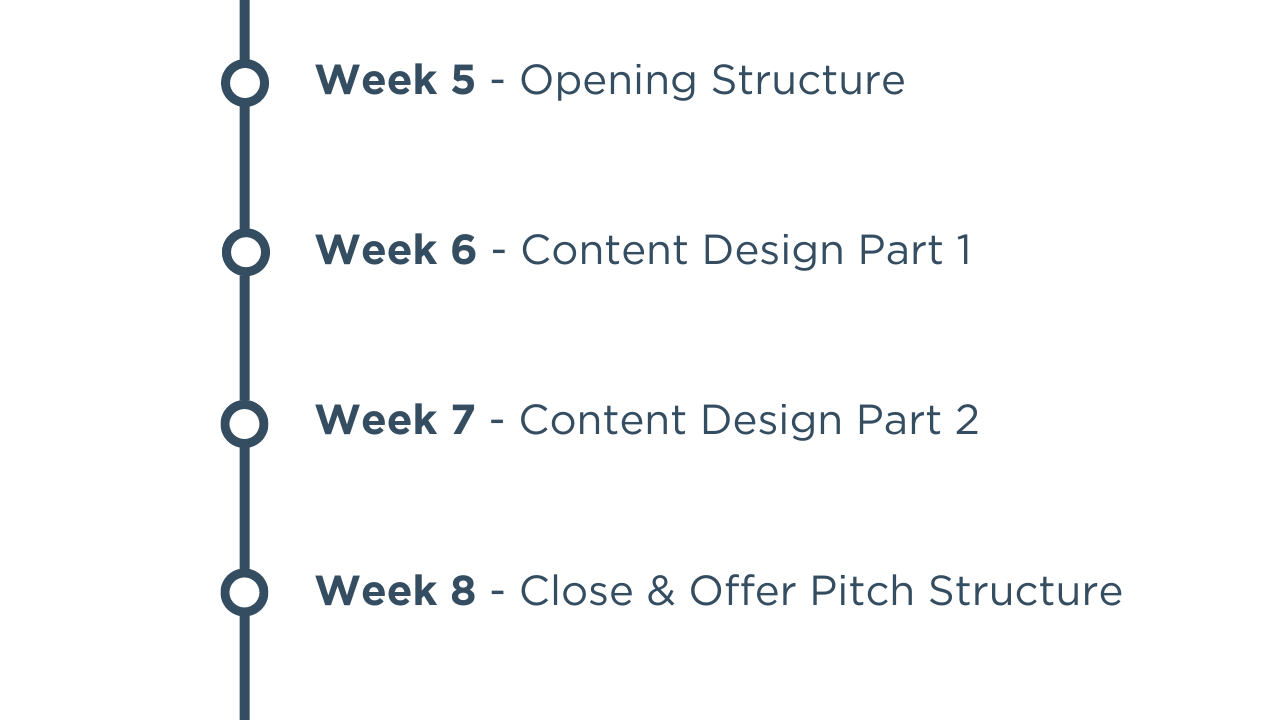 10 weeks of live group coaching sessions with our head coach - this will allow you to understand the concepts clearly, get feedback on each section and systematically build out your high-converting presentation.